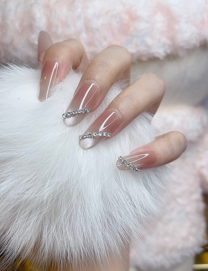 Beige Long Stiletto Press-On Nails with Rhinestones | Tipora 090